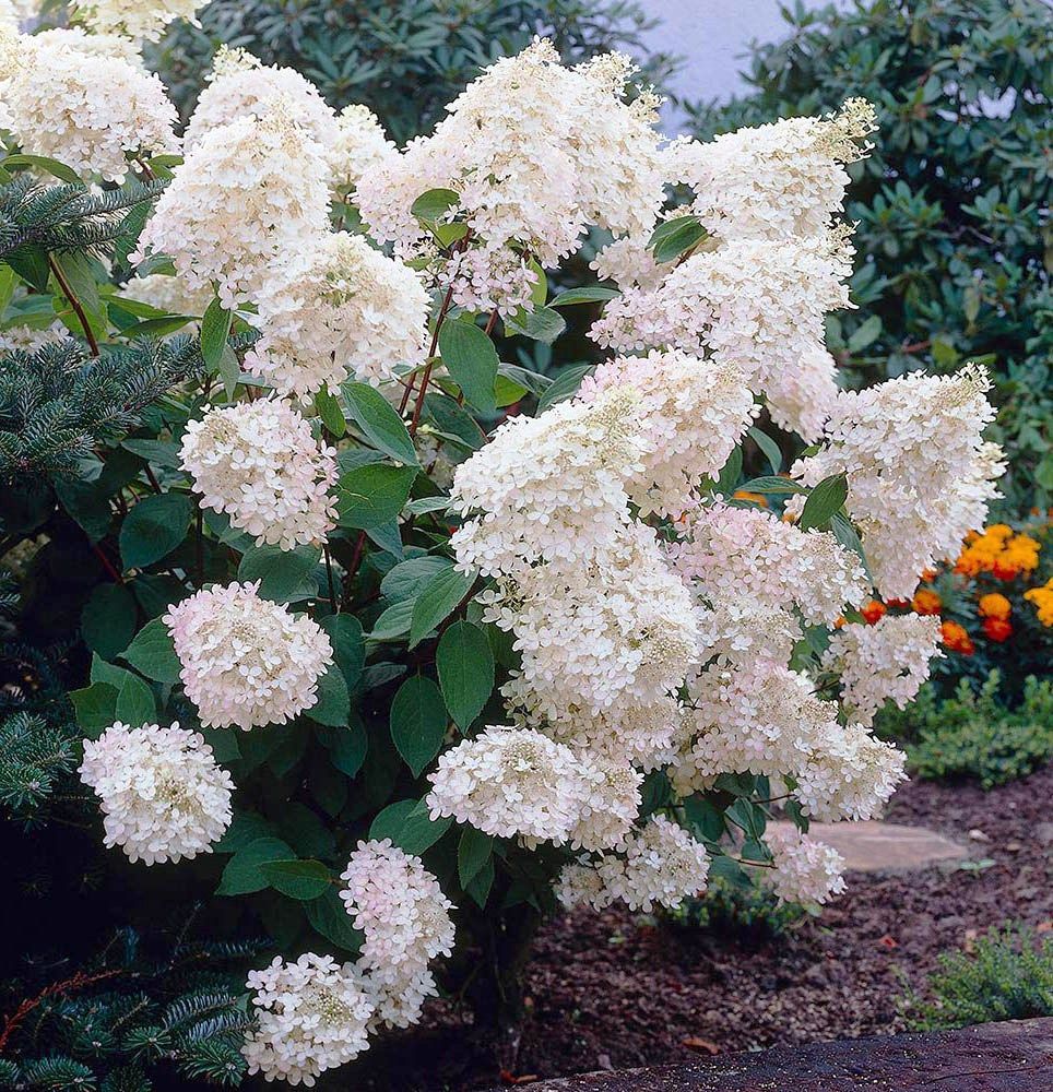 Гортензия метельчатая 'Грандифлора' – это великолепное декоративное растение, которое станет настоящим украшением вашего сада. Этот сорт отличается крупными, пышными соцветиями, которые в начале цветения имеют кремово-белый оттенок, а к осени приобретают нежно-розовый цвет.